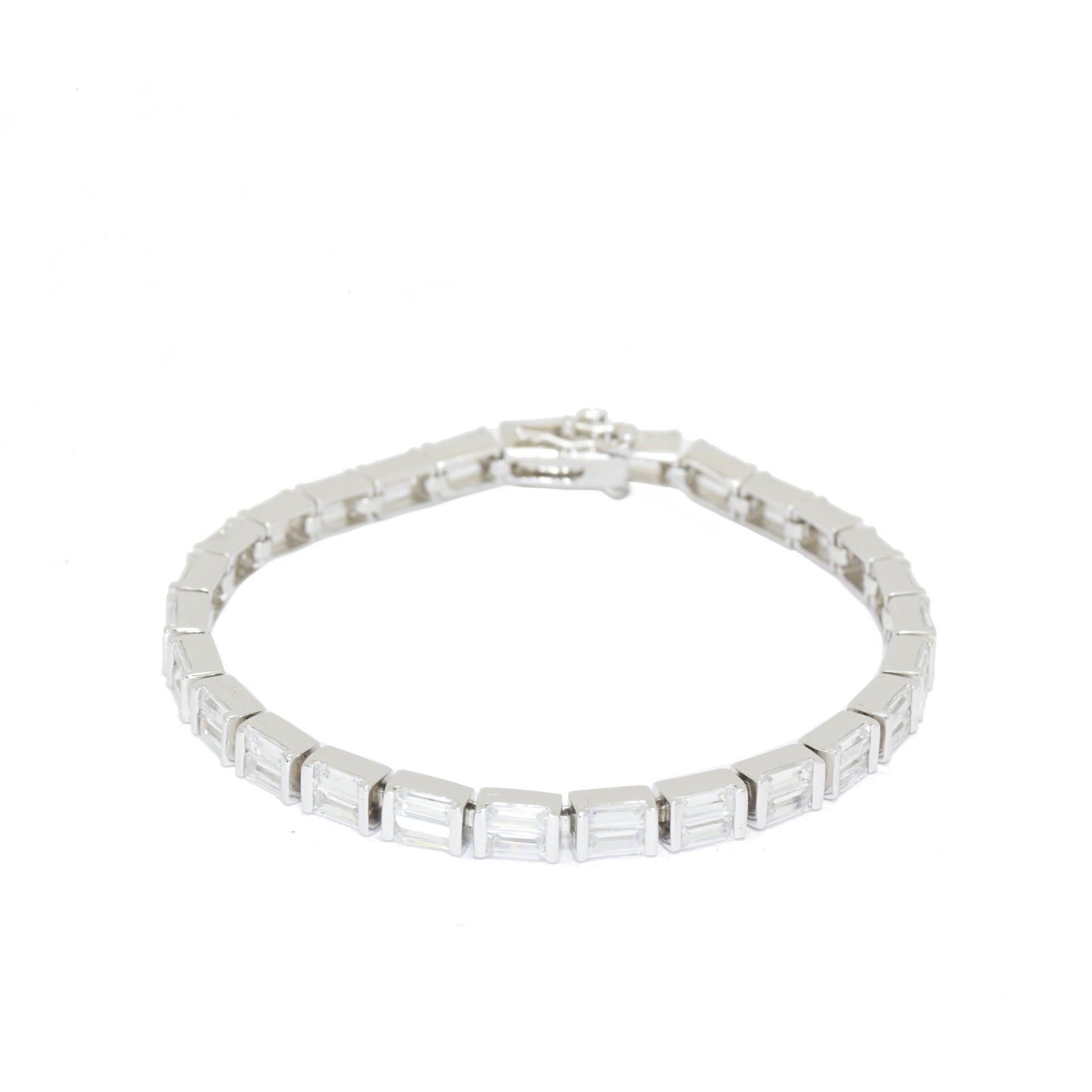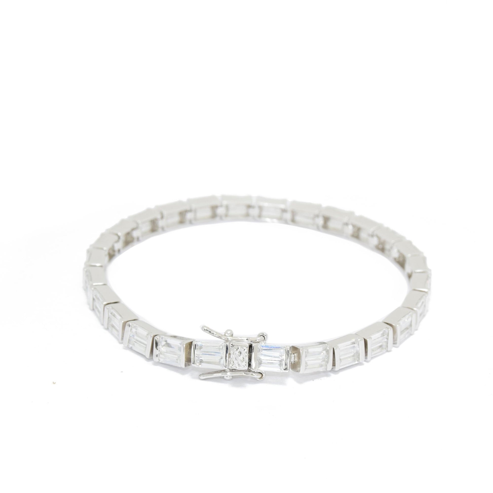 This tennis bracelet is a timeless classic and a great choice of jewelry for all wrists! A rhodium-plated clear crystal square chain bracelet with a clasp closure - and sparkle with style.